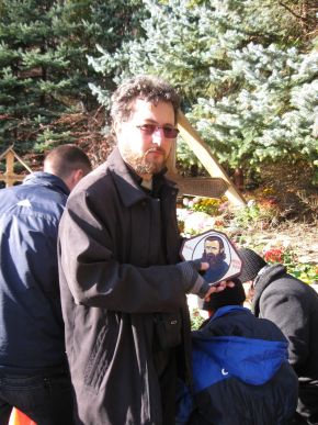 Creştinii veniţi la inchinare la crucea Părintelui ARSENIE BOCA au sărutat cu evlavie icoana - portret.PRISLOP 28.NOI.2009