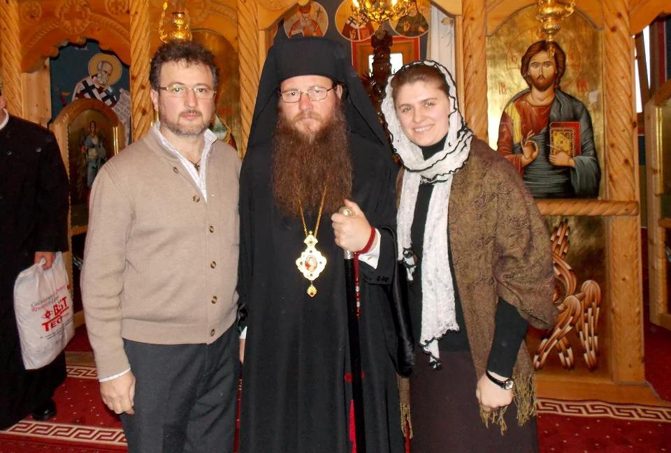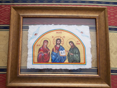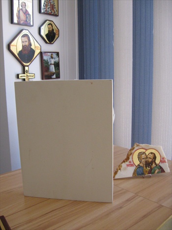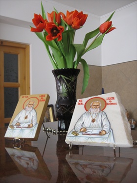 POZĂ din lateral... ( Din fundal "ne priveşte" Sfântul Părinte ARSENIE BOCA din icoana portret cu format romb. - Mărimea 25/32cm = 470 lei*...