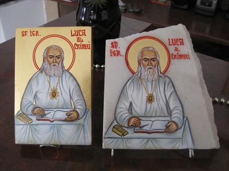 - Sf. LUCA Doctorul - MODEL 1. - Mărimea icoana stânga pe lemn 9/14 cm = ... lei - Mărimea icoană dreapta pe marmură 14,5/16 cm = ... lei...